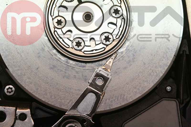 Poniżej widzimy bruzdę w środkowej części talerza. Odzysk danych w takim przypadku jest niemożliwy.