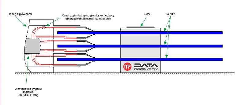 Drive head – Głowica napędu — mechanizm który porusza się wyczytując dane z powierzchni talerzy.